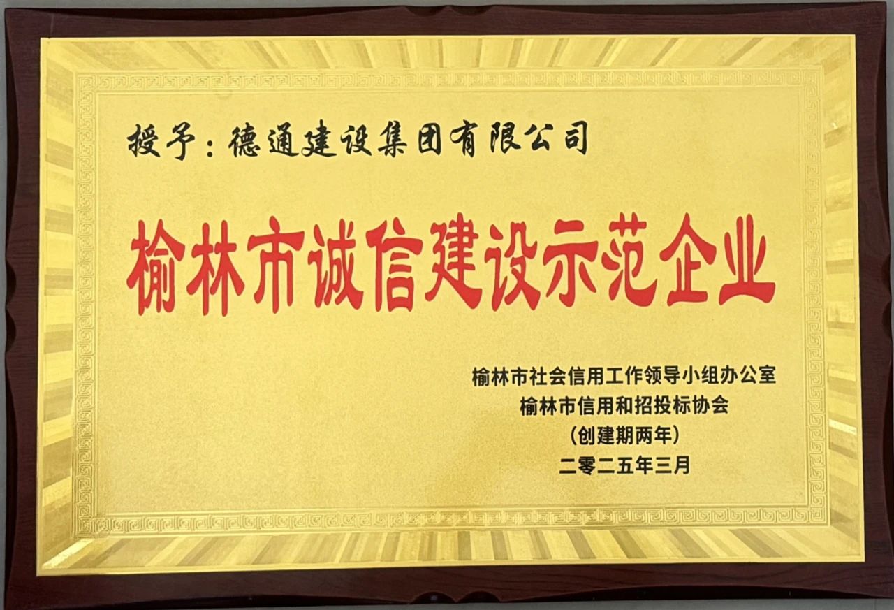 喜讯 | 德通建设集团荣获“榆林市诚信建设示范企业”-凯发棋牌