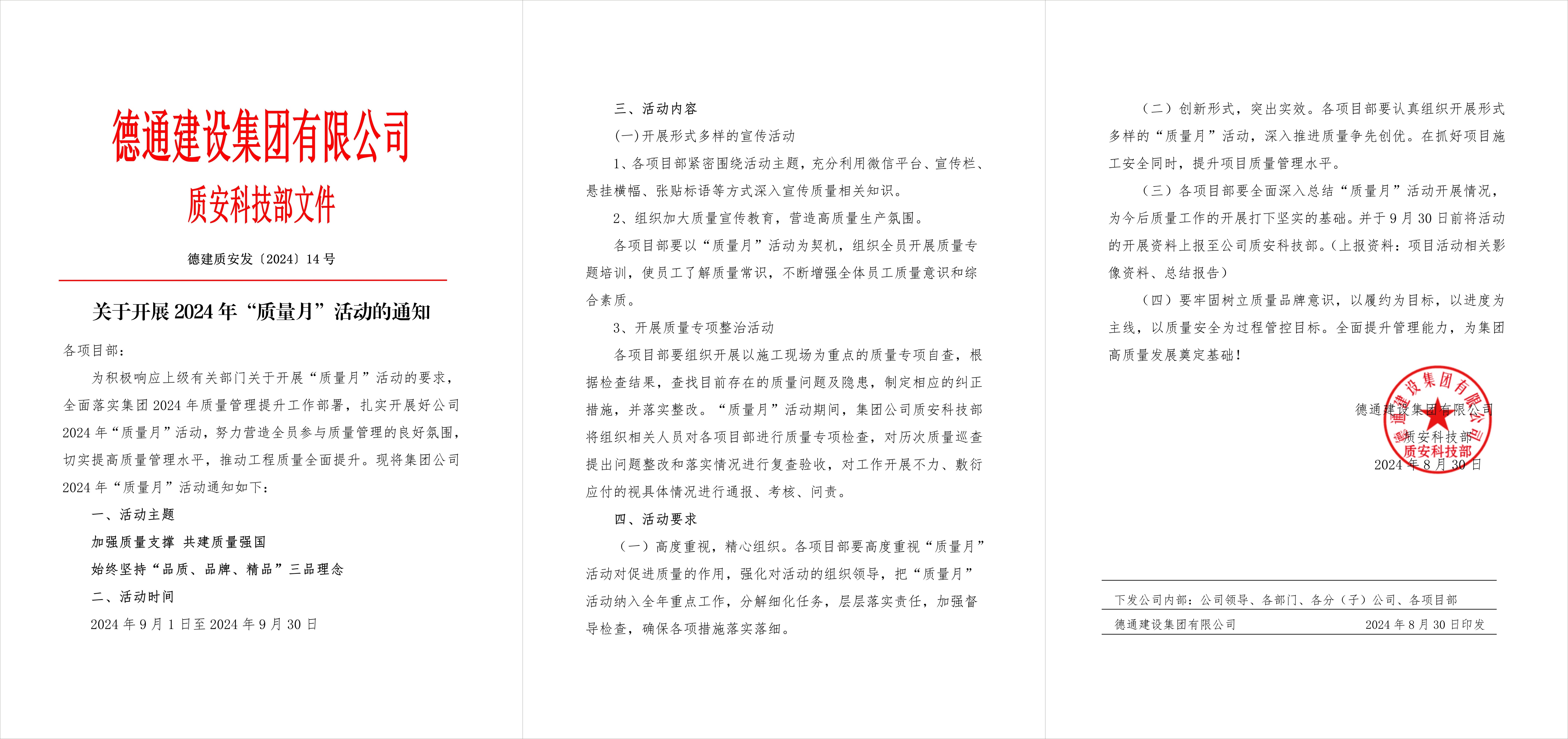 加强质量支撑 共建质量强国 | 德通建设集团开展2024年“质量月”活动-凯发棋牌