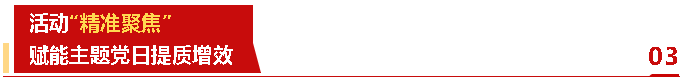 主题党日作为“三会一课”的补充应运而生,成为提升组织凝聚力、战斗力、创新力的重要载体。组织好高质量主题党日活动,就要在锚定标度、把握尺度、打磨精度中,让活动“精准聚焦”,确保不走题、不走样、不走神。2024年,德通控股党总支把党建活动作为提升组织力的“催化剂”,让党建融入企业发展全过程。